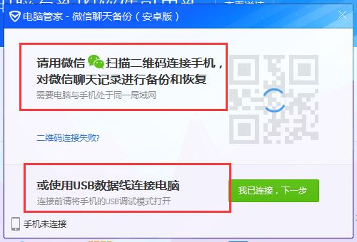 此时会有两种方式,一种是扫描二维码,另外则是使用USB进行备份。个人建议扫描二维码进行备份,因为如果你选择使用USB连接备份的话,需要打开手机调试模式。