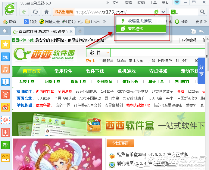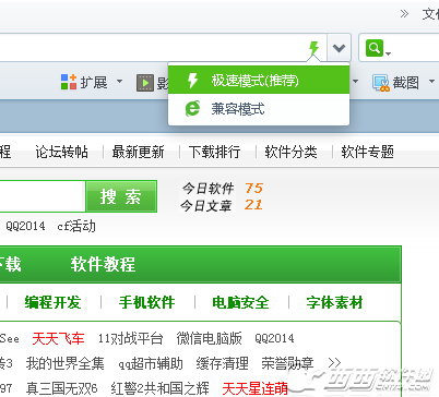 目前所有的浏览器都有高速模式和兼容模式两种,从名字就知道,高速模式是提高网页浏览速度的,而兼容模式是为了兼容浏览器设计的网站开的,但是我们在上网的时候经常要用到这两种模式。