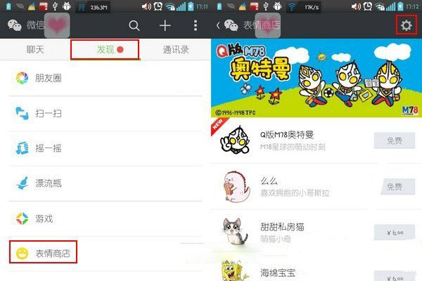 第一步、登陆微信,进入“表情商店”,点击右上角“设置”。
