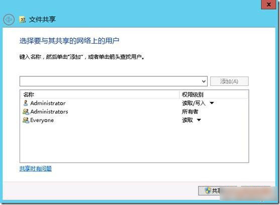 以便以后存档服务器和监控服务器的使用。任意位置创建一个文件夹,并共享,添加管理员有读写权限,everyone的只读权限。
