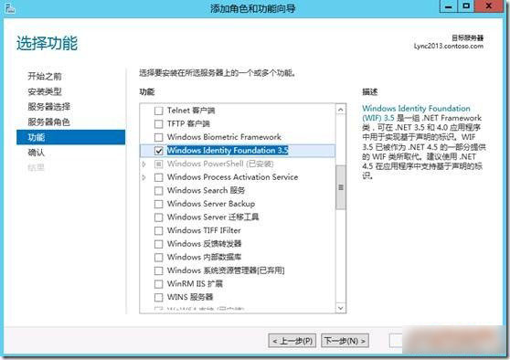 安装Microsoft .Net Framework 3.5(需要sever2012安装镜像并指定文件位置)、Windows Desktop Experience、Message Queuing、Windows Identity Foundation、