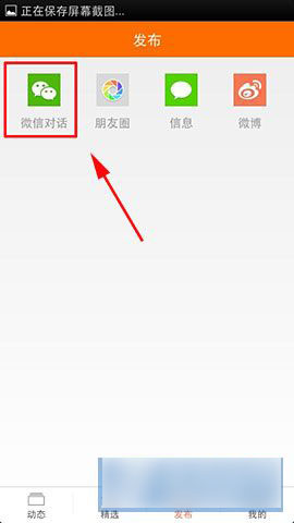 2)然后进入“发布”之后,我们可以看到“微信对话”、“朋友圈”、“信息”、“微博”,选择其中一项,以“微信对话”为例,点击进去。然后在“+”点击一下选择人物。(如下图所示)