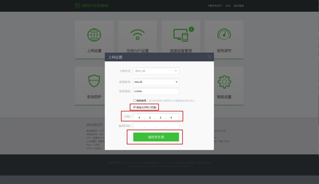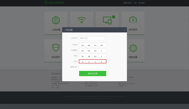 360安全路由器固件升级文件下载 360安全路由固件升级失败解决方法最近有用户反馈说在升级固件时一直提示失败,固件升级失败通常是因为本地DNS无法解析固件升级的域名,一般可以通过手动将路由器WAN口的DNS改成全球通用的“8.8.8.8”的方式解决。