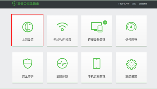 首先,登录luyou360.cn 进入路由器管理页面,点击上网设置。