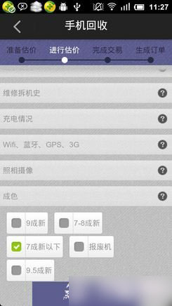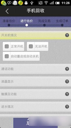 三、完成手机估价内容项目,按你要出售的情况如实选择即可。