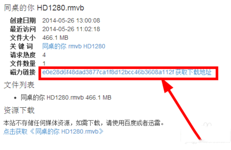 在返回的结果里面,我们选择任意一个获取磁力链接,如下图所示: