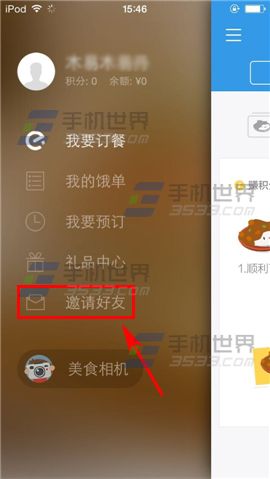 1)首先打开饿了么,进入首页后手指按住屏幕向右拉动,点击【邀请好友】。(如下图)