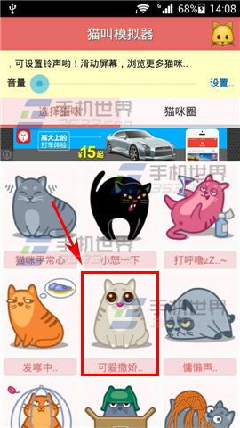 1)打开猫叫模拟器,长按自己喜欢的那个猫咪叫声类型。(如下图)