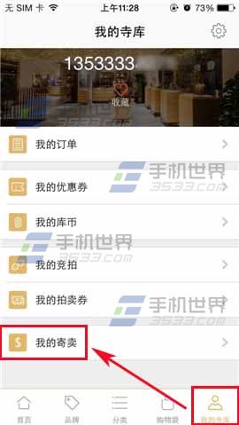 1)首先打开寺库奢侈品,点击【我的寺库】,然后点击【我的寄卖】,进入界面点击【在线寄卖】。(如下图)
