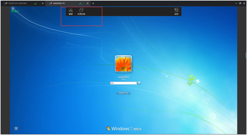 一:如果被控主机是双屏时,爱思远控主控端远程窗口功能区就有快捷切换按钮,如下图,直接点击即可快速切换被控主机屏幕;