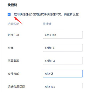 如下图点击启用后可直接在输入框内设置快捷键,修改后点击空白处即可保存。