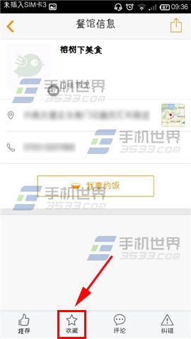 2)点击一个想要收藏的餐馆,进入到这个餐馆的信息页面,点击下方的【收藏】就可以啦。