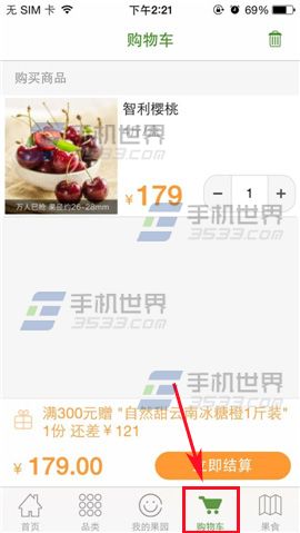 2)进入界面点击【加入购物车】即可添加到购物车,返回界面点击【购物车】即可查看水果。(如下图)