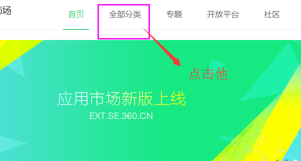 3、进入到扩展中心以后,可能你不能在当前网页中找到截图工具的应用。那么,点击最上面的全部分类,如下图。