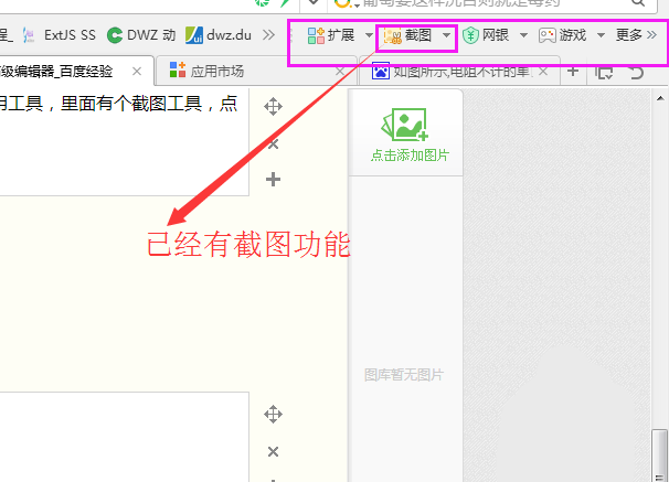 5、安装它很快,只需要几秒钟,然后你可以看到导航栏出多了一个截图的选项,具体如下图。