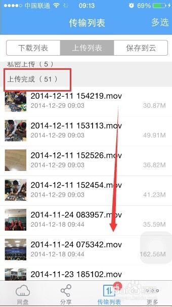 这里小编之前上传过50多个文件,占用了一定的手机内存。