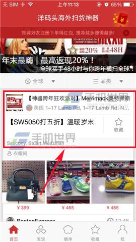 1)首先打开海外扫货神器,在首页现在要查看的买手店铺点击进入。(如下图)