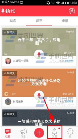 1)打开【抬杠】,点击下方的【发现】一栏。(如下图)