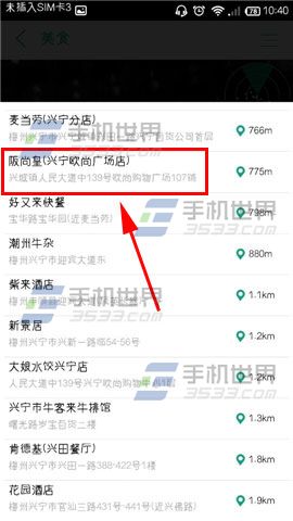 2)点击右上角的【三】图标,可以看到周围有多少商家店铺,选择一家【店铺】。(如下图)