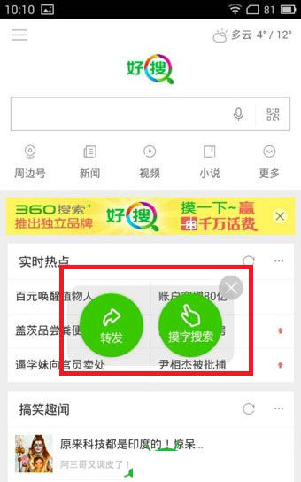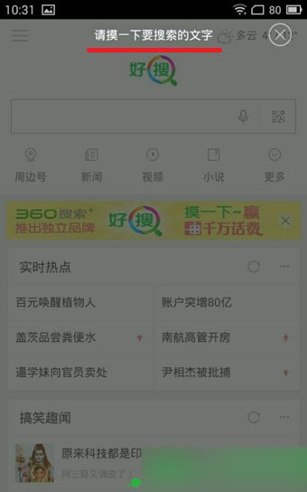 360好搜的摸字搜索简单的说就是直接涂抹你要搜索的文字,然后软件便会自动搜索内容,不需要你再手动输入的,但是目前的体验来看,并没有那种极致感,还有待加强。因为它只有在你复制文字或者截图的时候,这个功能才会被掉出来,当然,前提是你开启了这个功能。摸字搜索功能是默认就开启的,去过你没关闭过的话,不需要再去手动开启。