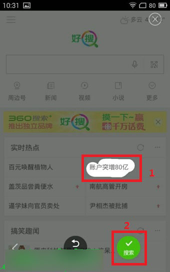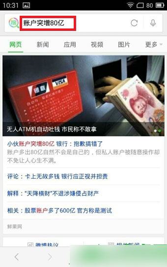按照提示,那我就直接摸一下“账户突增80亿”,然后点击【搜索】。