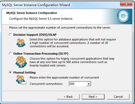 2)Online Transaction Processing(联机事务处理)(OLTP):如果你的服务器需要大量的并行连接则选择该选项。最大连接数设置为500。