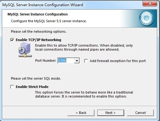 PS:(建议设置为开启TCP/IP;3306端口;Enable Strict Mode不要勾选择)