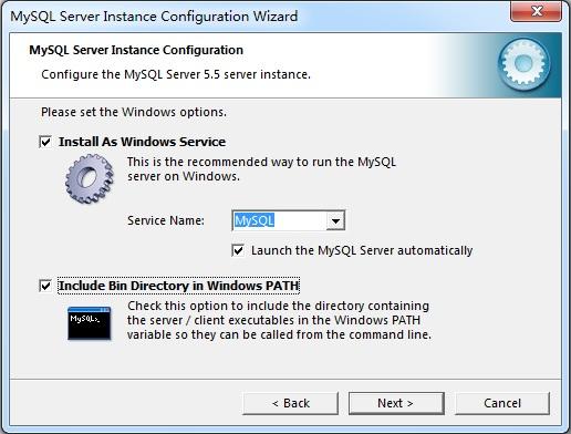 4)Include Bin Directory in Windows PATH选项,表示是否将MySql的bin目录(即%mysql%bin)加入系统环境变量中。