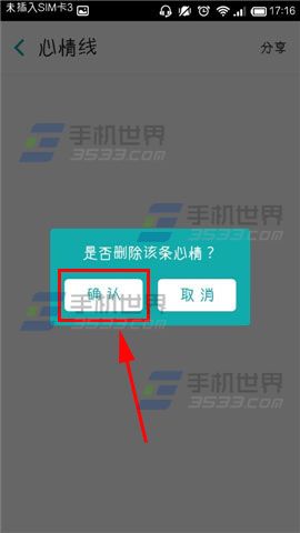 3)就会出来提示框提示是否删除该条心情,点击【确认】即可,看看是不是删除成功了呢。(如下图)