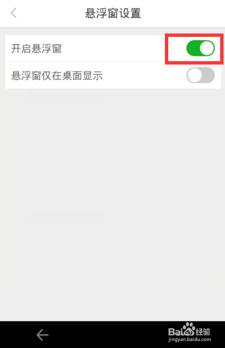 然后就会看到有一个“开启悬浮窗”选项,我们单击该选项后方的绿色按钮。