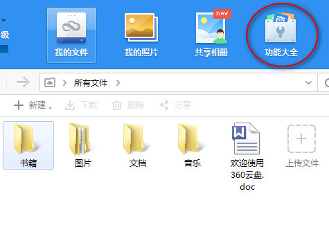 1、锁定360云盘主要是当自己离开操作时,可以锁定360云盘,以防信息泄露,具体操作是,首先登陆360云盘,然后点击功能大全。