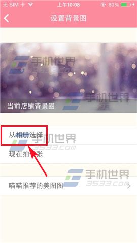 3)在界面可以选择从相册选择、拍一张或者喵喵推荐的背景图(例:从相册选择),在界面选择选择一张图片。(如下图)