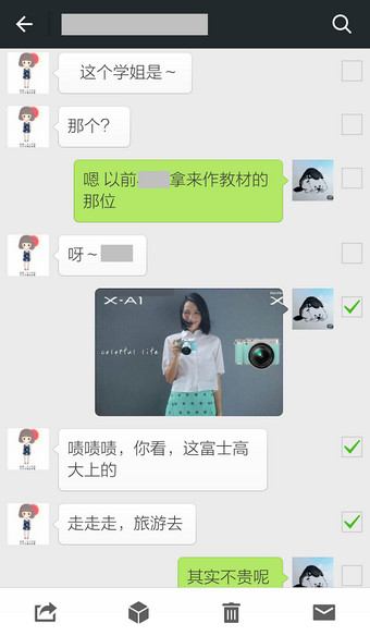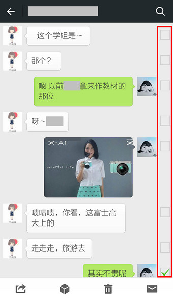 3.这时你长按的那个消息被勾选了,同时其他消息也出现了勾选框