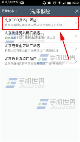 2)选择自己所在的【城市】,在该城市选择一个【影院】即可。(如下图)