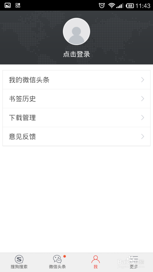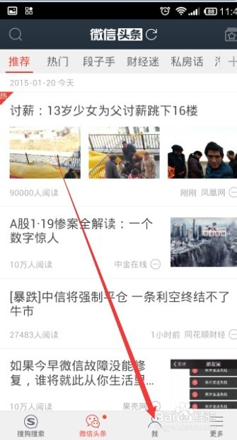 2、进入之后的页面是微信头条的页面,但是这个时候我们是无法使用的,点击最下方的“我”,进入登录页面。然后点击登录。