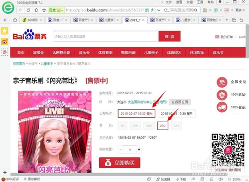 6、进入到该演出的画面,选择你要看的日期和场次,在选择你要买的票价,再次点击“立即购买”按钮,如图所示。
