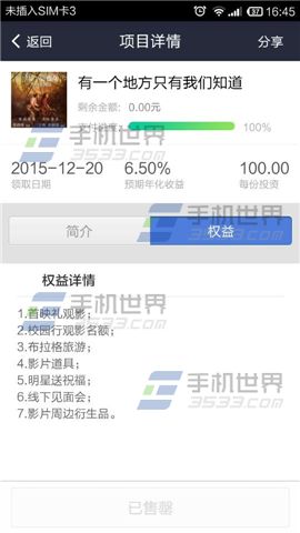 娱乐宝会不定期开启投资,可以通过手机淘宝进入娱乐宝预约界面,选择项目投资,网民100块钱就可以投资电影。投资了某个项目之后,就能享受其特权。