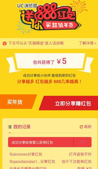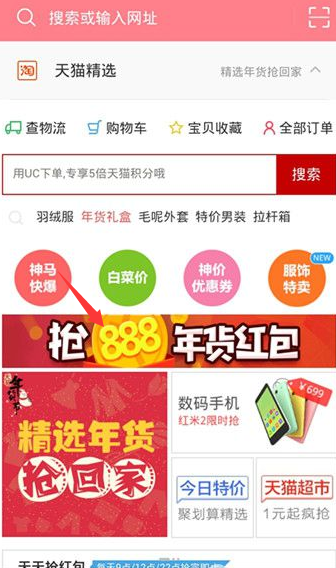 抢888天猫红包 手机UC浏览器新春天猫抽奖活动