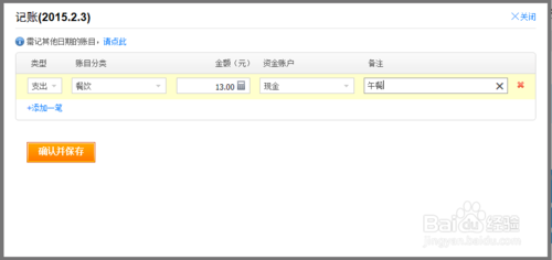 5、从日历中选择要记账的日期,即可弹出记账窗口,按照输入框内的提示输入相关内容即可,如下图所示。