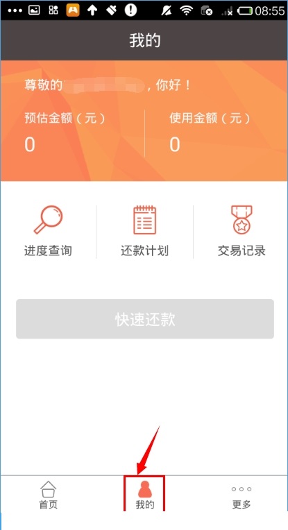 二、进入我的界面,即可进行进度查询、还款计划及交易记录的查询等。
