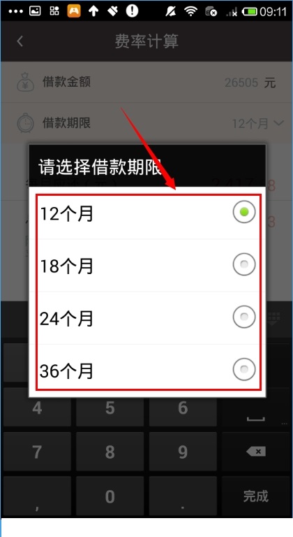 四、如借款期限不是12个月,即可选择如下图的18个月或24个月或36个月。