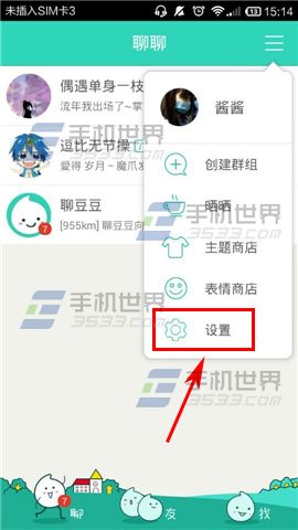 1)打开聊聊, 点击右上角的三道杠【三】,弹出菜单栏,点击【设置】按钮。(如下图)