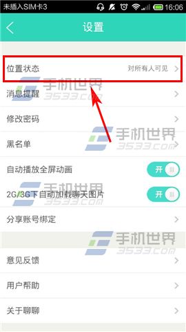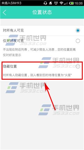 2)在设置页面后,点击【位置状态】,选择【隐藏位置】的按钮即可。(如下图)