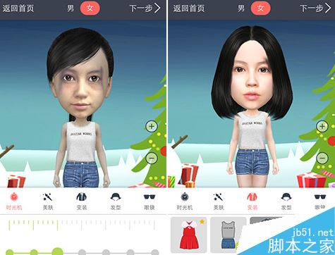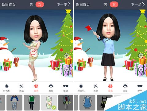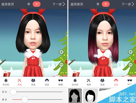 面部调整完毕后,就可以为TA选择发型,再进一步为其装扮了。快到圣诞节了,软件也很贴心地给我们准备了一些有关圣诞的元素,比方说圣诞衣服啦、帽子啦等等。大家可以跟据自己的喜好自行想选择。