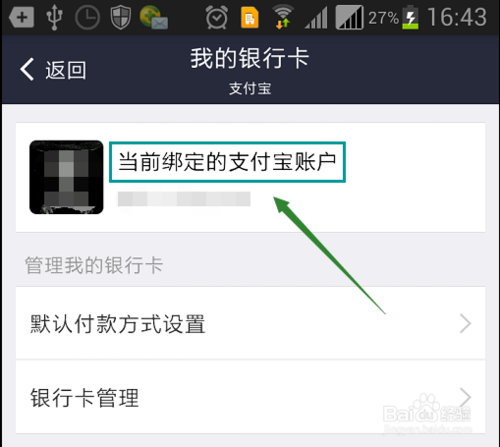 4、支付页面的最左上角就是”我的银行卡“选项,点击会切换至支付宝账户以及与支付宝绑定的银行卡页面