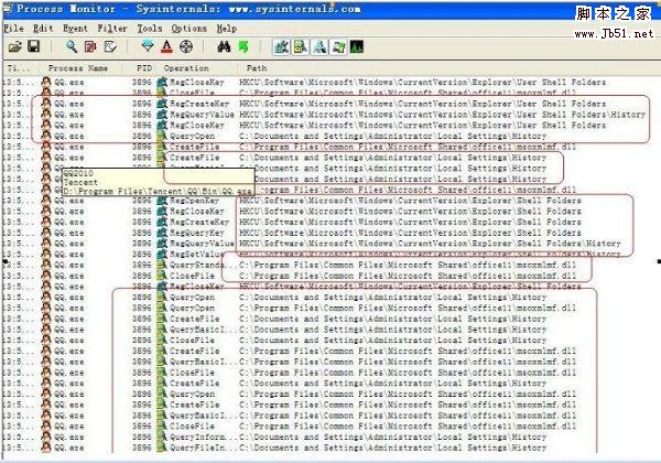使用ProcessMonitor查看QQ活动记录。ProcessMonitor可以在微软官方主页下载,下载地址为:http://technet.microsoft.com/en-us/sysinternals/bb896645.aspx