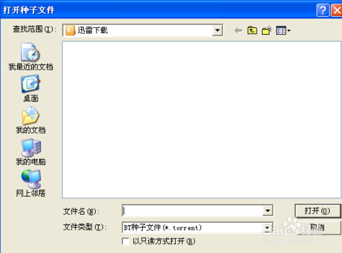 在迅雷里点击“新建”,添加BT任务,弹出一个对话框(如图),在对话框中打到BT种子所放在的目录,选中找到的BT种子,打开之后弹出一个对话框,在这个对话框的列表里,选自己想要看的电影。
