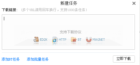 像ed2k,http,magnet都可以直接把链接复制到“新建任务”下载栏中。(迅雷这个下载栏可以支持多条下载链接,多条下载链接,需要回车键换行,最多支持1000条任务)。新建任务对话框中有一个“添加批量任务”,用这个可以批量下载(这个批量任务可以方便的创建多个包含共同特征的下载任务。)。