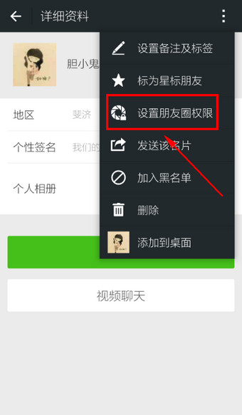 4.在弹出选项里选择【设置朋友圈权限】
