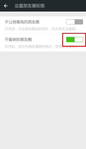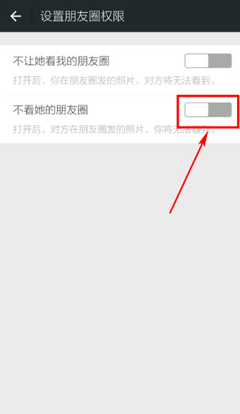 5.点击【不看他/她的朋友圈】后的按钮